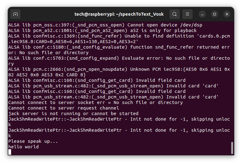Wait few secont and test, say "hello world" or other short sentence. Example result:
